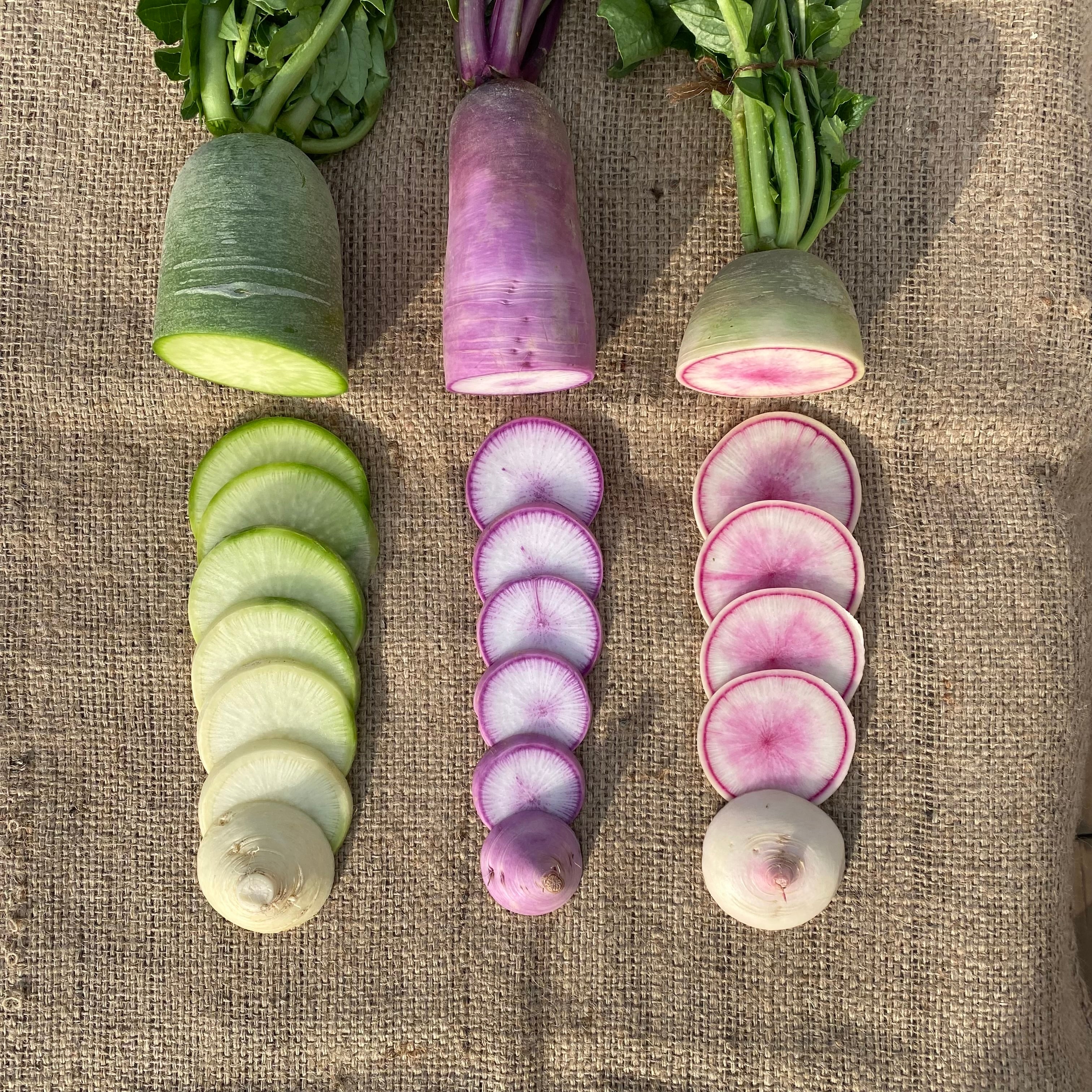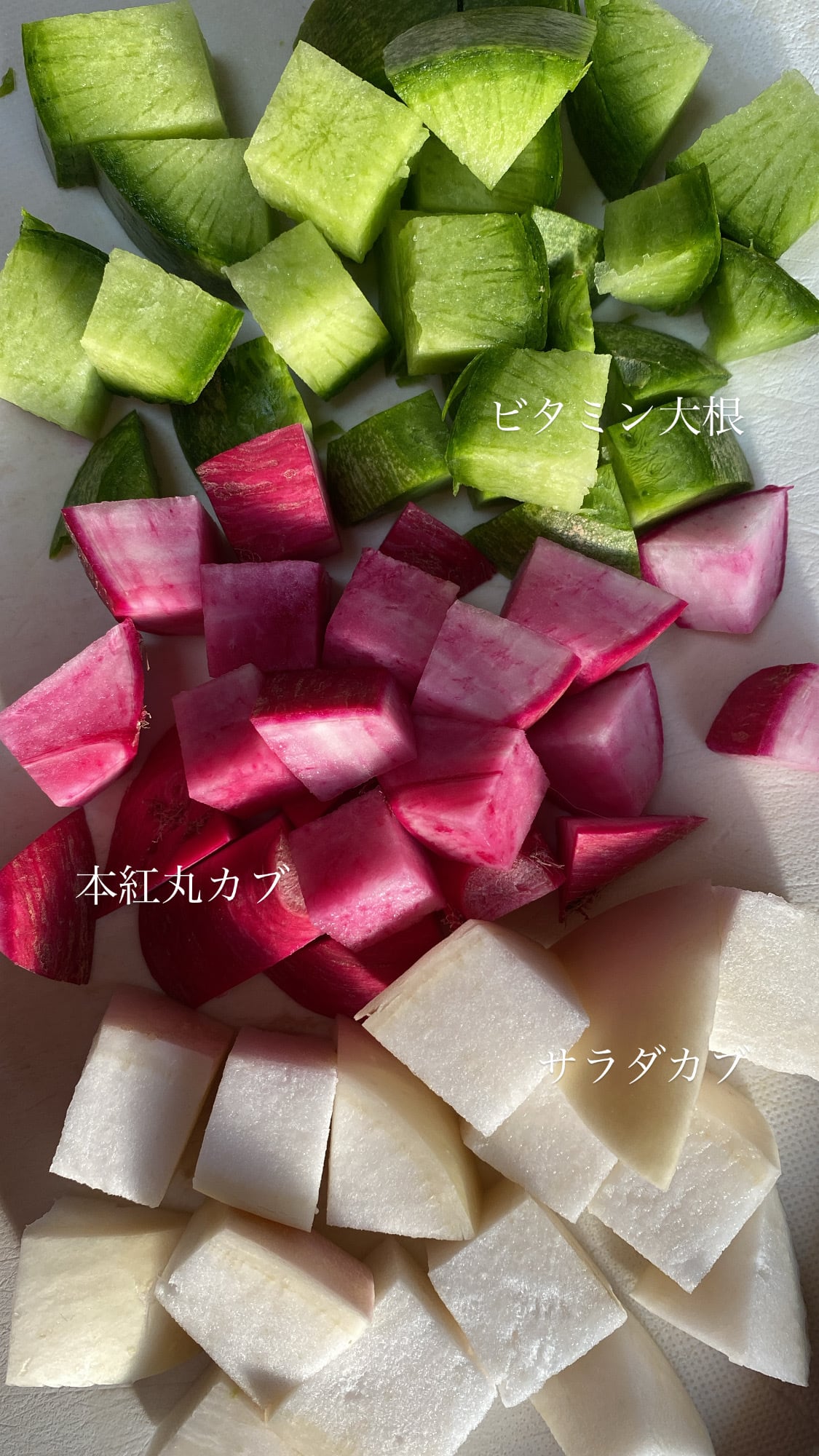 ※内容例:サラダカブ・紫大根・紅芯大根・ビタミン大根・黒丸大根・白大根など